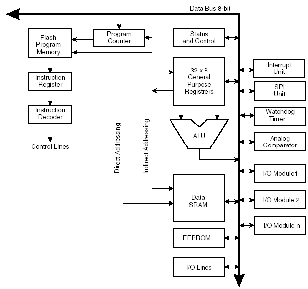 - 8-разрядный высокопроизводительный AVR микроконтроллер с малым потреблением