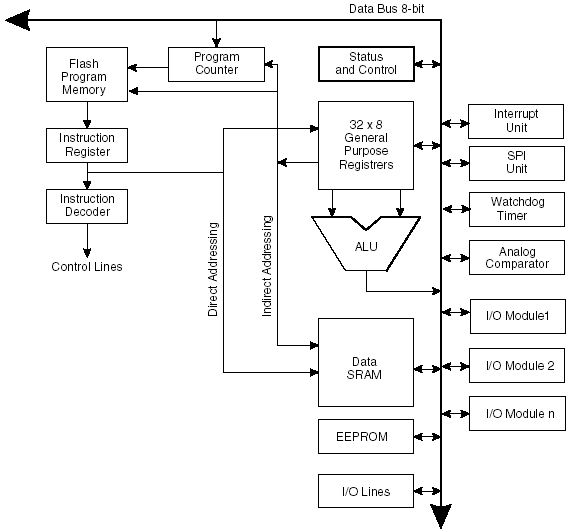 - 8-разрядный высокопроизводительный AVR микроконтроллер с малым потреблением