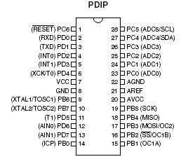28-выводной корпус PDIP, 32-выводной корпус TQFP и 32-выводной корпус MLF
