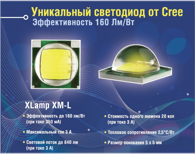 Весной 2010 года компанией CREE был анонсирован новый мощный светодиод