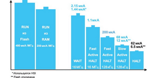 STM8S в различных режимах работы