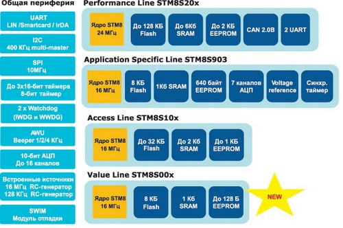 точки зрения линейки STM8S/STM8L Value Line. |