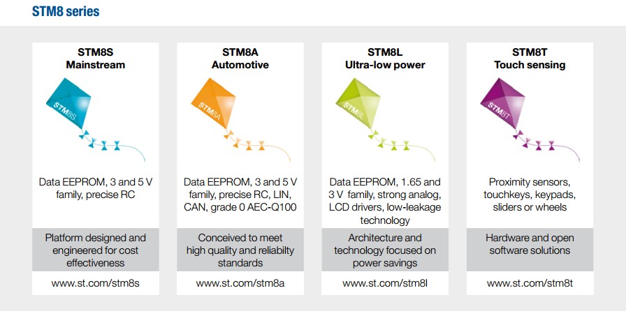 микроконтроллеров STM8 делится на четыре линейки в зависимости от сферы