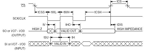 –вход, SO - выход, SCK/CLK – тактовые импульсы) или параллельному интерфейсу (I/O0-I/O7