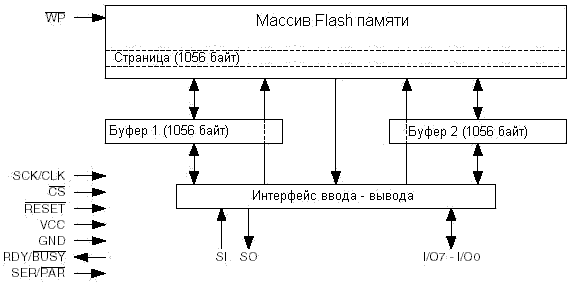 бит памяти организованы как 8192 страницы по 1056 бит каждая. В дополнение к