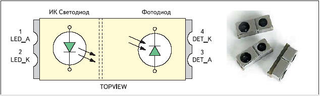 фотодиода и аналого-цифрового преобразователя и выполнен в миниатюрном безвыводном корпусе для поверхностного монтажа PLCC. Регулировка