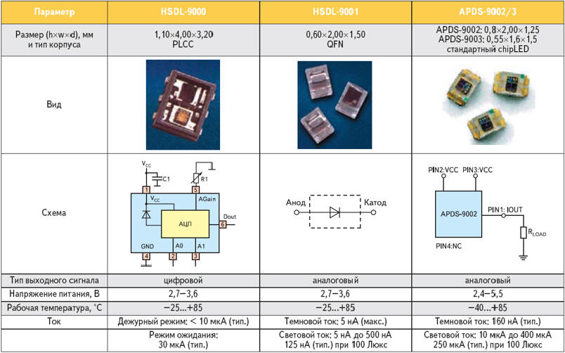 HSDL-9001 и APDS-9002/3 (миниатюрные). Устройства