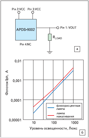 включения датчика HSDL-9001 приведена на рис. 3а. Диапазон изменения