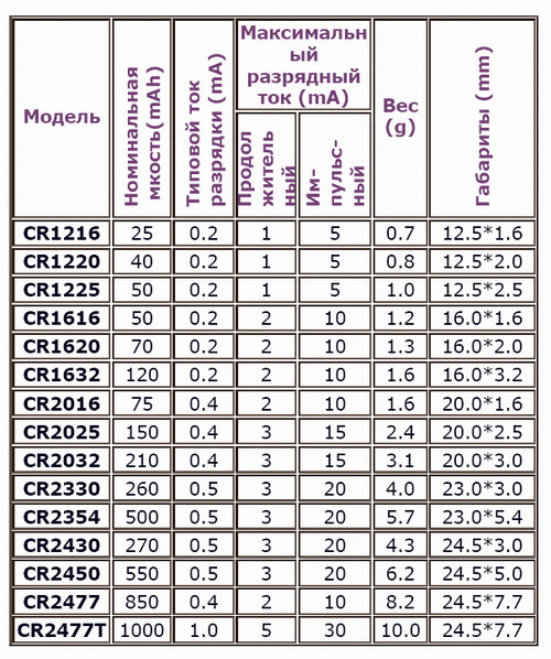 системы литий-диоксид марганца (Li-MnO2) CR series |