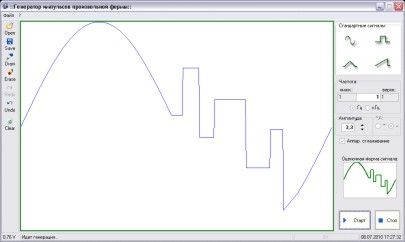 заданием параметров сигнала (прорисовка формы сигнала, установка