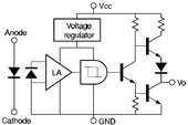 интегрированный. Он включает фотодиод, усилитель, триггер Шмидта и
