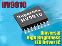HV9910 – высокоэффективный очень недорогой ШИМ-стабилизатор тока светодиодов. Отличительная особенность – возможность работы как в низковольтных приложениях, например в блоках управления автомобильными светодиодными фарами с питанием от 12 В, так и в приложениях декоративного освещения улиц и помещений, получающих напряжение от электрических сетей 220В.