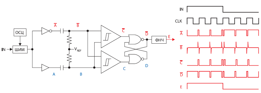 резистивно-конденсаторной цепочкой – B и B. Далее сигналы преобразуются