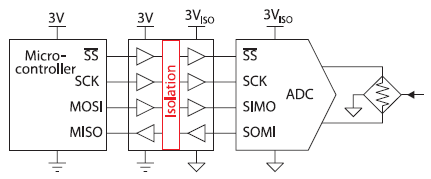 Рис. 5. Гальваническое разделение интерфейса SPI
