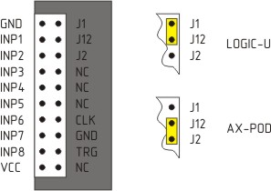 "J1" - для "LOGIC-U", либо "J2" - для "AX-Pod") перед подключением