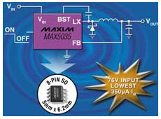 напряжением до 76 В и током покоя 270 мкА без нагрузки.