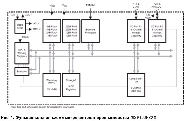 энергопотреблением в режиме холостого хода. Микроконтроллеры серии MSP430F2xx