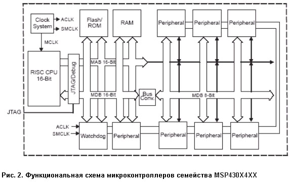 Микроконтроллеры семейства MSP430x4xx содержат 16-разрядное RISC CPU,