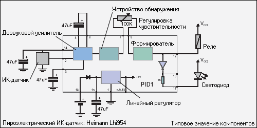 PID1 - гибридная схема, которая позволяет реализовать, с добавлением нескольких внешних компонентов, приёмник инфракрасного излучения
