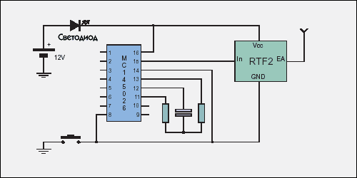 RTF2-XXX - гибридная схема, которая позволяет реализовать полный радиопередатчик с частотной манипуляцией, дополненный схемой кодирования