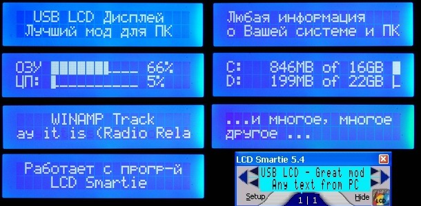ПК. LCD может быть установлен в ваш компьютер на переднюю панель, в 5"