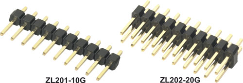 контактами на плату, прямые, растр 2.54 мм с отводами для