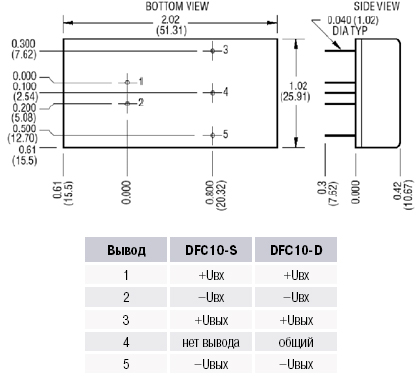 преобразователь с Uвх=9-18 В и Uвых=3.3 В, DFC10U48D15 - двуполярный DC/DC