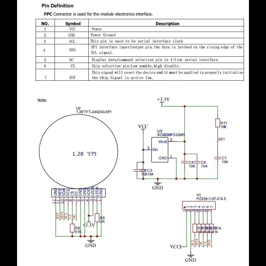 TFT1.28 Display — это микрокруглый ЖК-панель IPS TFT с разрешением 240x240 пикселей