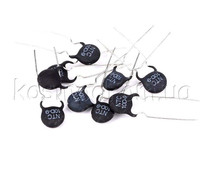 Фото может отличаться от реального вида предмета, но это не влияет на основные характеристики изделия | Терморезистор NTC Thermal Resistor 10D-9 Терморезистор, NTC, сопротивление: 10 Ом при 25 С. Диаметр: 9 мм. NTC10