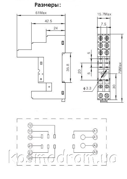 Колодка для реле: Монтаж: DIN-рейка, Кол-во групп: 1-2, Шаг: 5 мм. Ном. нагрузка 300В/5А.