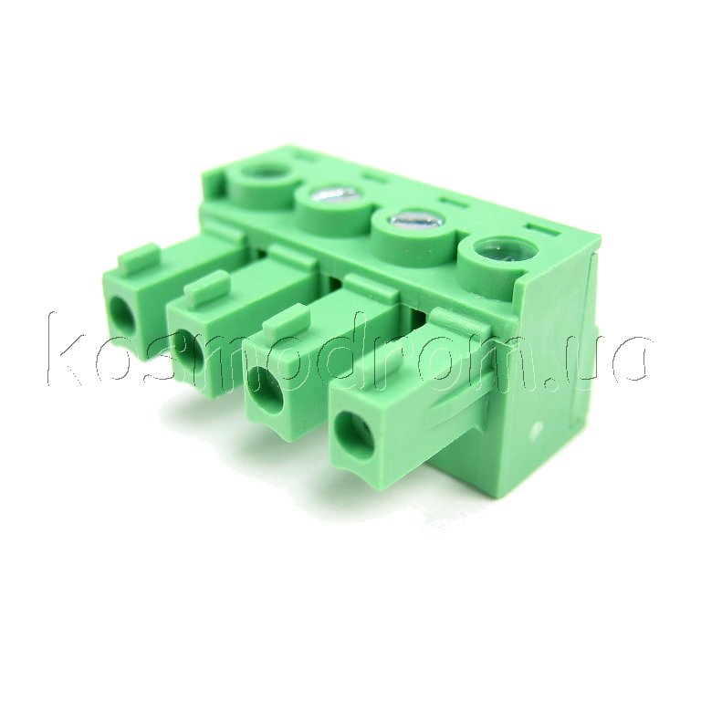 Разъемный клеммник, на кабель, однорядный, контактов 4, шаг 5,08 мм. Зеленый