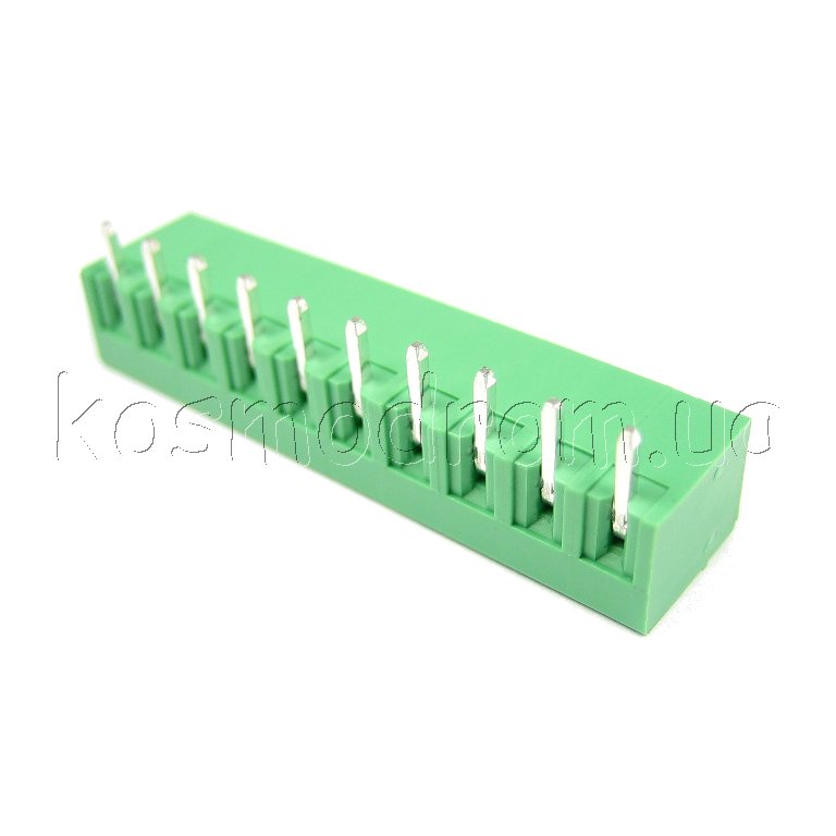 Разъемный клеммник, однорядный, шаг 3,81 мм: кол-во контактов 10, на плату, зеленый. 15EDGRC-3.81-10P-14-00Z(H)
