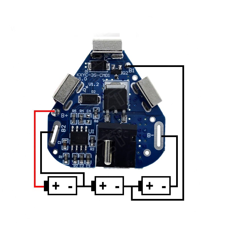Эта плата защиты (BMS) предназначена для литий-ионных аккумуляторов 18650, собранных в конфигурацию 3S (три ячейки последовательно), обеспечивая рабочее напряжение 11,1–12,6 В. Плата рассчитана на максимальный постоянный ток 6 А и защищает аккумуляторы от небезопасных режимов эксплуатации, таких как перезаряд, переразряд, короткое замыкание и перегрузка по току. Благодаря своим компактным размерам и эффективной защите, она идеально подходит для маломощных устройств, таких как фонари, портативные устройства и системы освещения. Эта плата BMS идеально подходит для аккумуляторов, используемых в устройствах с небольшой нагрузкой, предоставляя им надежную и эффективную защиту для безопасной работы и долговечности.