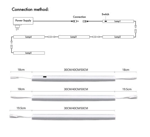 контактное включение/выключение, теплый или холодный свет, 30 или 50 см.
