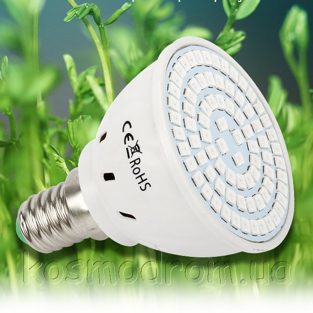 Светодиодная фитолампа 220V-E14-48LEDS-FitoLamp Освещение для растений, питание 220В, светодиоды 2835: 16 синих, 32 красных На складе ... код товара: 00-00057949