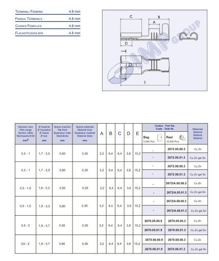 Фото может отличаться от реального вида предмета, но это не влияет на основные характеристики изделия | Наконечник ножевой 2670.05.00.9 "Наконечник: плоский, 4,8мм, 0,5мм, ""мама"", 0,5...2mм2, обжим"