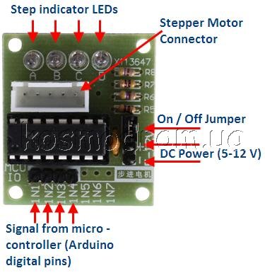 Драйвер шагового двигателя ULN2003-MOTOR-DRIVER позволяет работать