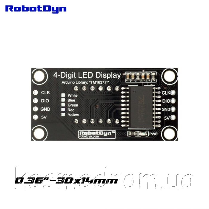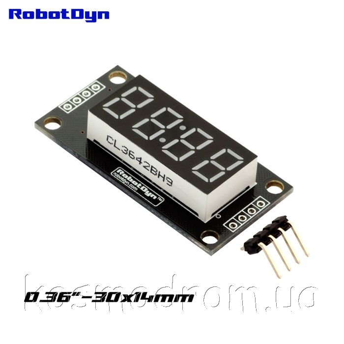 Светодиодный индикатор четырехсимвольный 4-Digit BLUE 30x14 Clock Модуль четырехсимвольный 7-сегментный светодиодный дисплей, высота символа 9,14 мм размер 30х14мм, TM1637. Цвет: синий. С функцией часов. На складе ... Производитель: RobotDyn код товара: 00-00056779