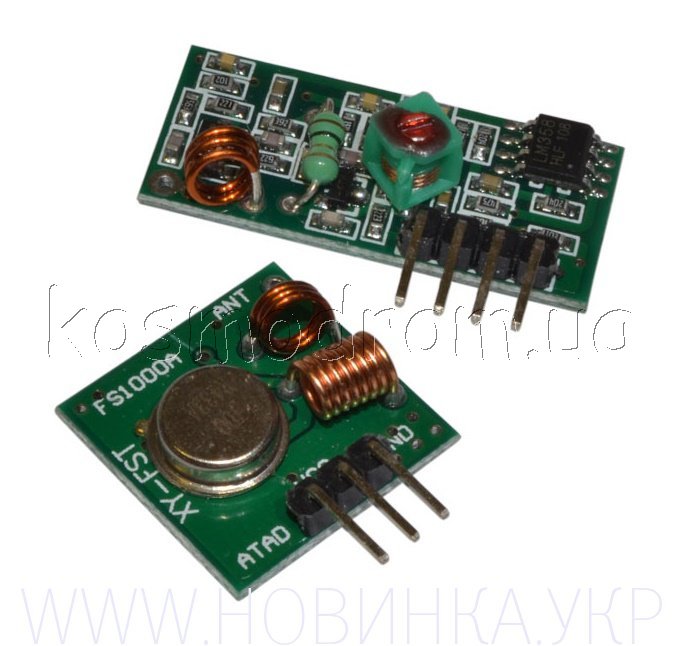 Набор беспроводного приемника и передатчика диапазона 433 мГц. Предназначен для построения беспроводных систем на базе микроконтроллера Arduino и Raspberry. И будет полезен для проектов управления авиа и авто моделями. А также проектов охраны и автоматики, для построения беспроводных датчиков и исполнительных реле, дистанционного управления электроприборами до 100 метров.