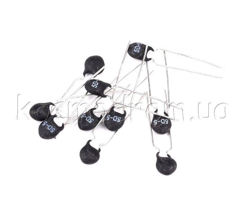 Фото может отличаться от реального вида предмета, но это не влияет на основные характеристики изделия | Терморезистор NTC Thermal Resistor 5D-5 Терморезистор, NTC, сопротивление: 5 Ом при 25 С. Диаметр: 5 мм.