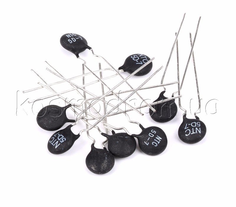 Фото может отличаться от реального вида предмета, но это не влияет на основные характеристики изделия | Терморезистор NTC Thermal Resistor 5D-7 Терморезистор, NTC, сопротивление: 5 Ом при 25 С. Диаметр: 7 мм.