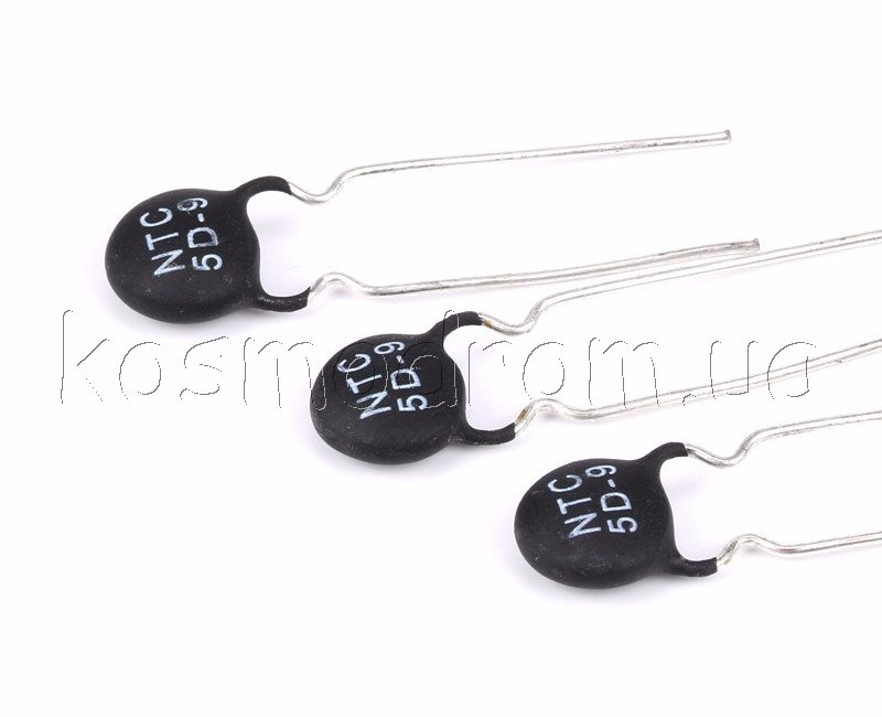 Фото может отличаться от реального вида предмета, но это не влияет на основные характеристики изделия | Терморезистор NTC Thermal Resistor 5D-9 Терморезистор, NTC, сопротивление: 5 Ом при 25 С. Диаметр: 9 мм.
