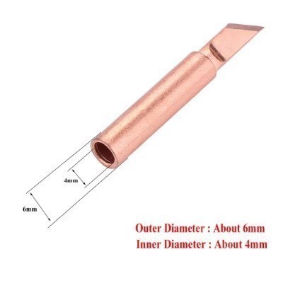 Медное жало для паяльника, Толщина рабочей части: 3,5 мм. под 45 градусов. Длина рабочей части: 15 мм. Внутренний диаметр 4мм. Внешний 6 мм.