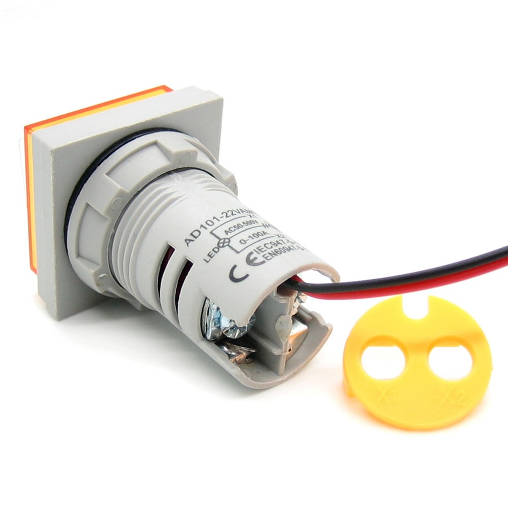 Фото может отличаться от реального вида предмета, но это не влияет на основные характеристики изделия | Амперметр AD101-22VAMS-Yellow Цифровой панельный вольтметр/амперметр. Квадратной формы. Трехсивольный. Диапазон измерения 0...100А. AC50-500VAC. Трансформатор тока в комплекте. Цвет свечения: Желтый