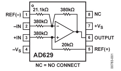 Дрейф напряжения смещения 20 мкВ/°C,макс. (AD629A)