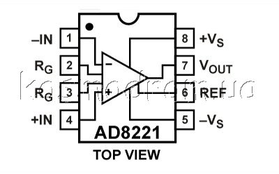 AD8221 выпускается в недорогих 8-выводных корпусах SOIC и MSOP,