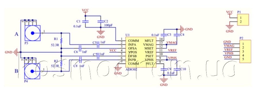 Фото может отличаться от реального вида предмета, но это не влияет на основные характеристики изделия | Отладочная плата AD8302-Modul Фазовый детектор
