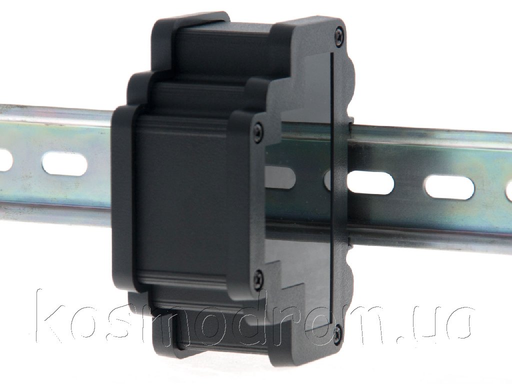 Фото может отличаться от реального вида предмета, но это не влияет на основные характеристики изделия | Корпус на ДИН-рейку ALUD2MG-PBK-V0 44.0x98.3x69.0мм,на DIN рейку, чёрный, алюминиевый, боковины пластик, без уплотнителя