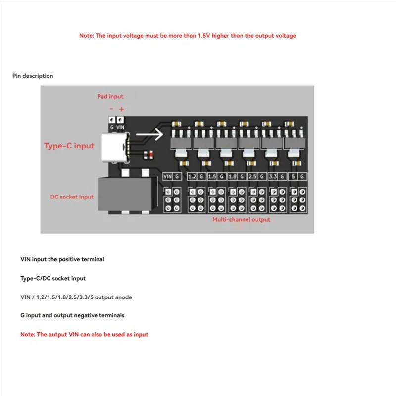 Фото может отличаться от реального вида предмета, но это не влияет на основные характеристики изделия | Миниатюрный модуль питания AMS1117 MULTI CHANNEL Voltage Regulator Высокоточный модуль стабилизатора напряжения AMS1117, многоканальный, с разъёмом Type-C DC, выходное напряжение от 1.2В до 5.0В, ток до 800 мА
