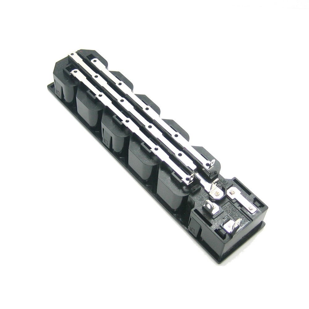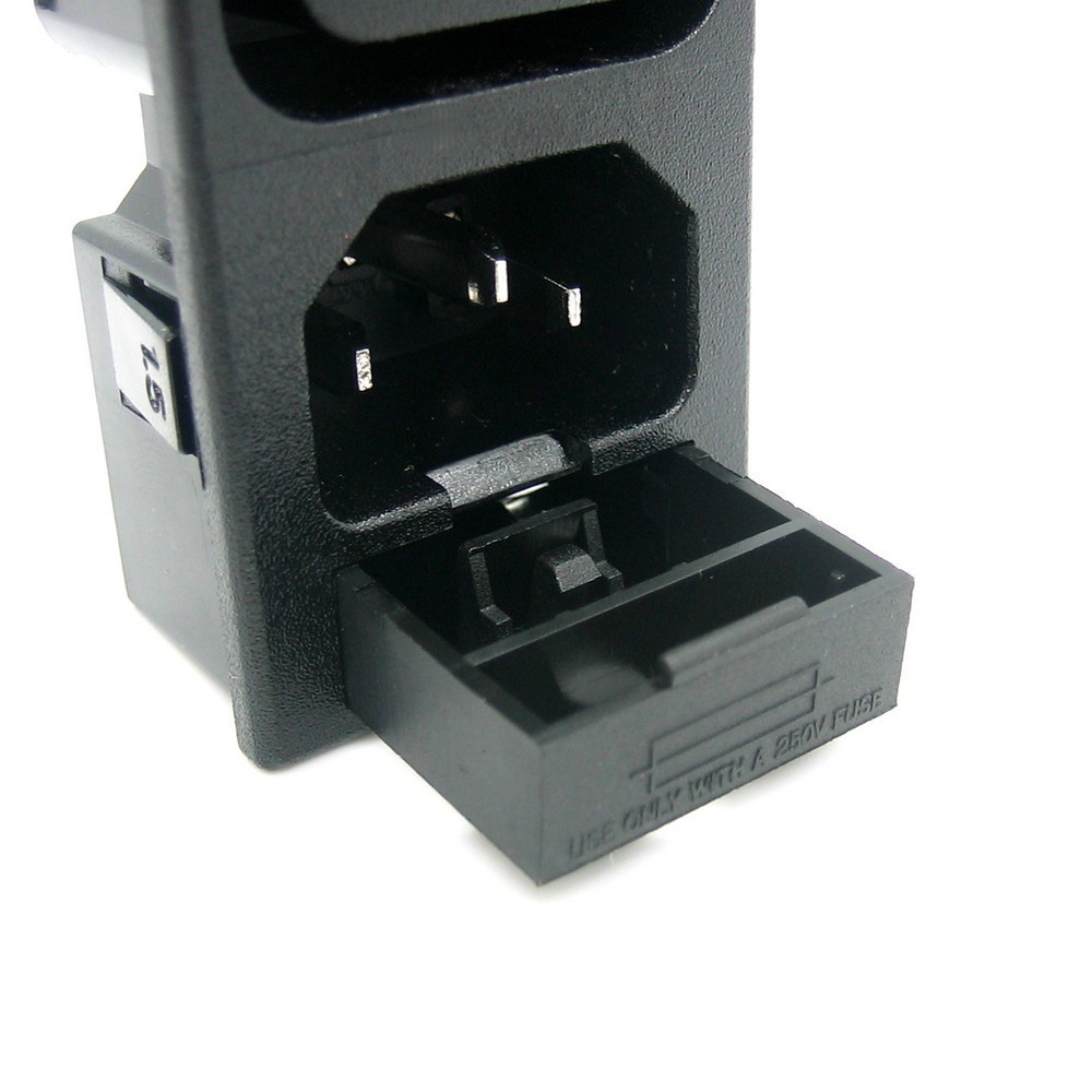 Разъем IEC 320 C13+C14. 220В. вилка/розетка, на блок, 3 контакта, крепление защелка. Количество секций вилка: 1 Количество секций розетка: 5. С отсеком для предохранителя